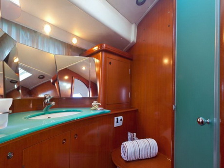 La barca ha 4 cabine e 4 bagni, più cabina e bagno equipaggio, tutti dotati anche di doccia, ogni cabina dispone di ampi vani ed un armadio dove riporre i vostri abiti. Una grande cucina attrezzata, una dinette con salone e divano molto spazioso davanti ad un ampio tavolo; oltre ovviamente alla zona carteggio/ comando che fa parte degli spazi comuni.